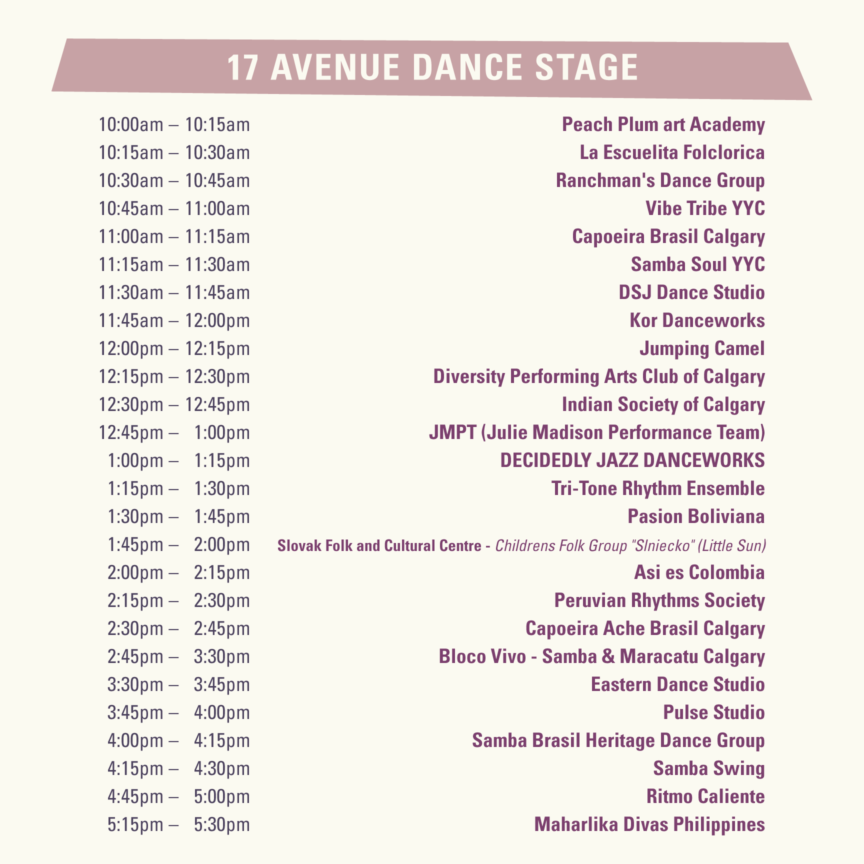 apply nowDance performances will be curated to align with the festival's programming. Cultural and folkloric organizations, dance schools and clubs are welcome. No longer accepting solo dance performances or live music components due to a limited number of performance slots and time restraints.